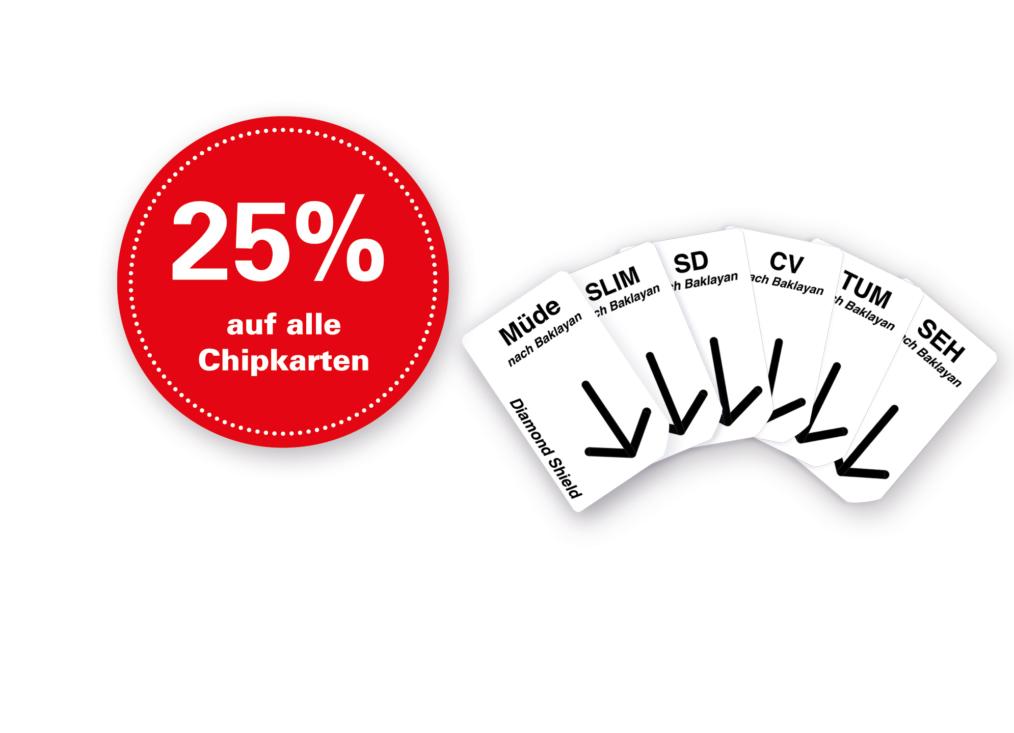 Die Funktionen der Diamond Shield Zapper-Modelle können außerdem durch inzwischen weit über 250 Chipkarten immens erweitert und an jedes Bedürfnis angepasst werden. Sparen Sie nur jetzt ganze 25 % auf alle Chipkarten!