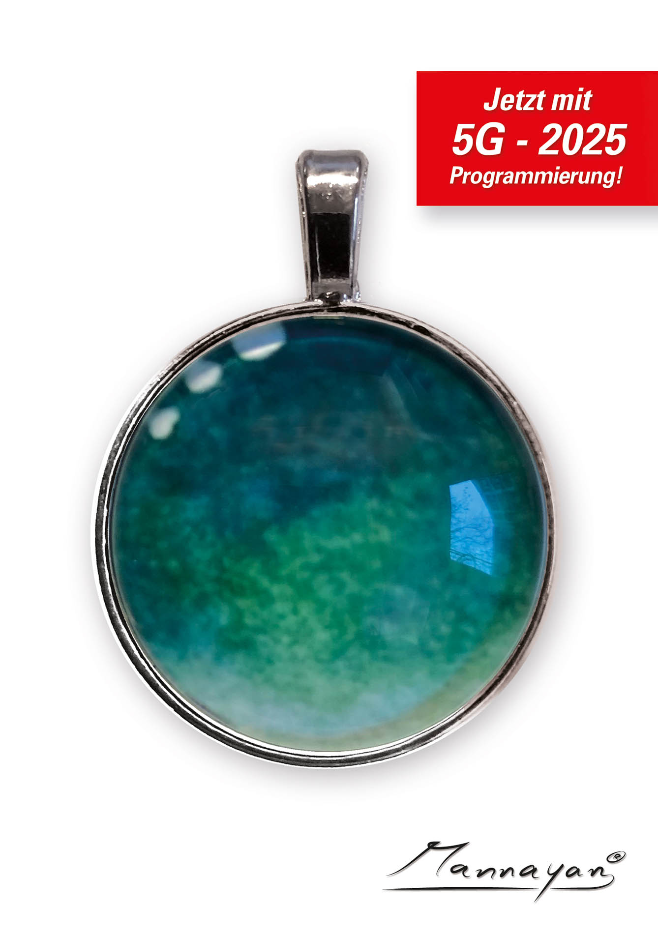 Anti-E-Smog Amulett mit Doppel-Transponder-Chip als Möbiusschleife zur universellen Neutralisierung von Störfrequenzen unterwegs.