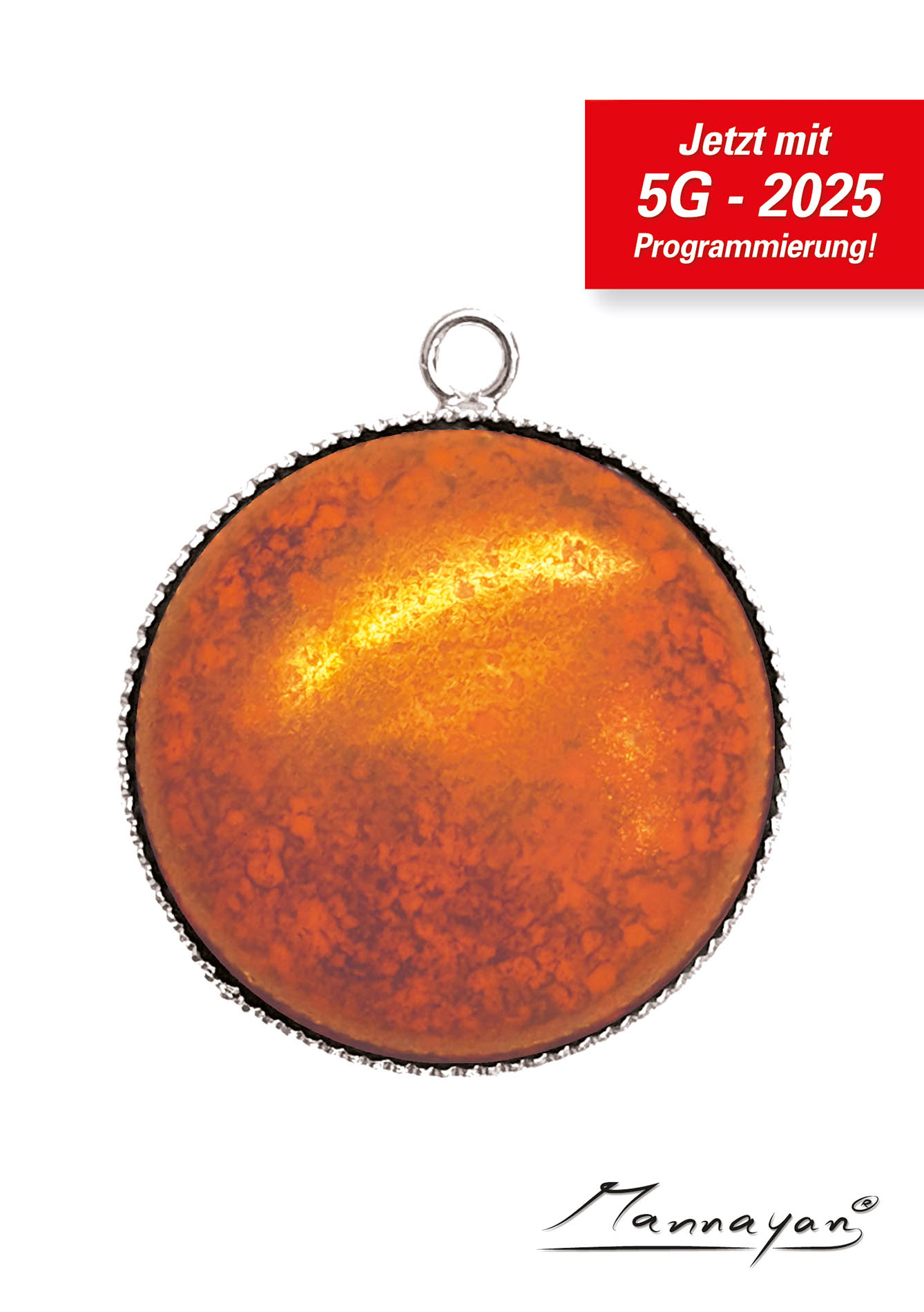 Anti-E-Smog Amulett mit Doppel-Transponder-Chip als Möbiusschleife zur universellen Neutralisierung von Störfrequenzen unterwegs.