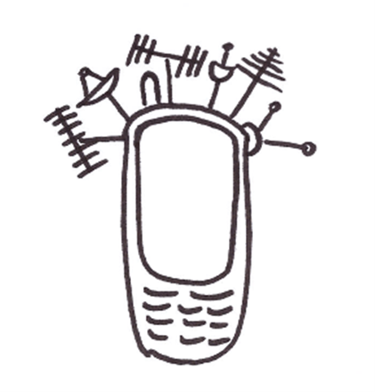 Ohne Fraktal-Antennen würden unsere Handys so aussehen, denn für jeden Frequenzbereich (Internet, Bluetooth, Telefonie, etc.) benötigt man eine eigene Antenne.